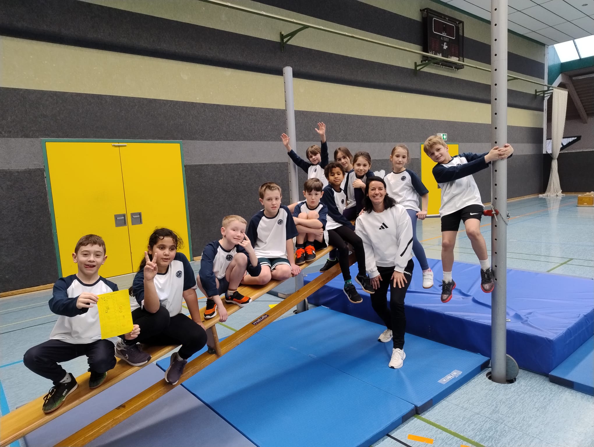 Mit viel Begeisterung und sportlichen Einsatz nahmen die Schülerinnen und Schüler der 2. Klassen am Hallenspielfest des Landkreises Darmstadt-Dieburg teil. Austragungsort war die BSZ-Halle mit 22 Stationen in Darmstadt, die sich für einen Tag in eine abwechslungsreiche Bewegungslandschaft verwandelte. Die Stationen luden die Kinder dazu ein ihre motorischen Fähigkeiten anzuwenden und weiterzuentwickeln. Die vielfältigen Bewegungsangebote umfassten Balancierübungen auf unterschiedlichen Geräten, abwechslungsreiche Sprungstationen, verschiedene Wurfstationen, Fühlparcour, Würfelstationen, bei denen Bewegungsformen erwürfelt und anschließend durchgeführt werden mussten. Darüber hinaus konnten die Schülerinnen und Schüler der FES ihre Geschicklichkeit testen und an Mut-Stationen, wie der Gletscherspalte persönliche Herausforderungen meistern.